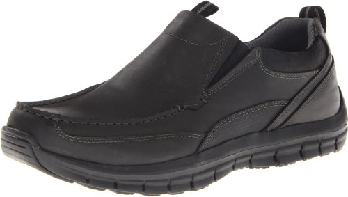 Get your point across in style with the Skechers Masen-Leone slip-on shoe. This men's loafer features a supple leather upper with stitching and overlay accents; elastic goring lends a snug fit. The padded collar, soft fabric lining and foam-cushioned footbed offer long-lasting comfort, while a shock-absorbing midsole adds support. A flexible rubber outsole lends traction to the Skechers Masen-Leone slip-on loafer.